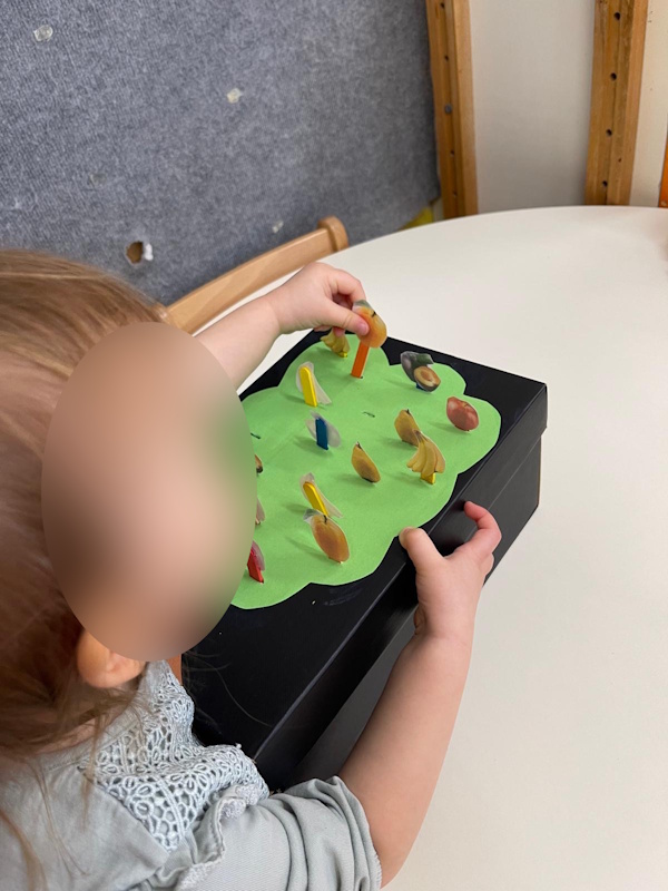 Djeca su sudjelovala i u senzorno-manipulativnim aktivnostima istražujući pijesak. Grabljenjem, sipanjem i premještanjem pijeska tražili su skrivene kartice s voćem, čime su razvijali osjetilno iskustvo, finu motoriku te poticali govor i opažanje.