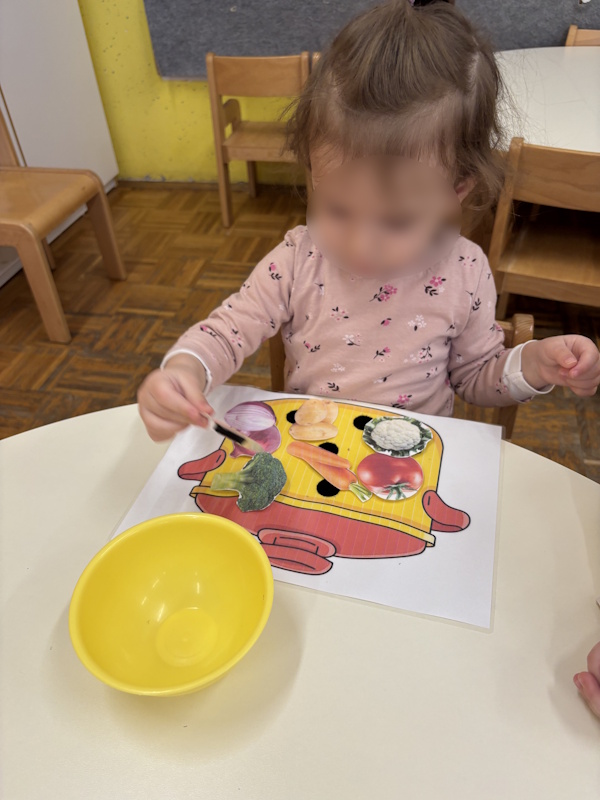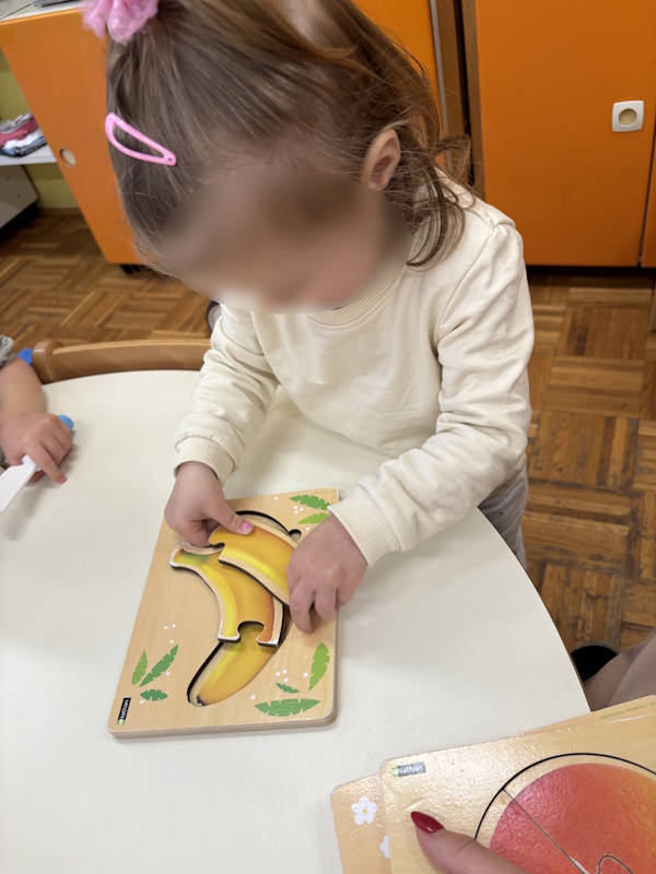 Velik interes djeca su pokazala i za stolno-manipulativne aktivnosti. Razni didaktički materijali, poput spajanja odgovarajućih dijelova voća, prepoznavanja i imenovanja voća čime su razvijali pažnju, koncentraciju i finu motoriku. Posebno su uživali u aktivnosti simboličke igre “kuhanja juhe“, gdje su “dodavali“ povrće u lonac, oponašali radnje odraslih te komunicirali međusobno jednostavnim rečenicama poput „Kuham juhu“ ili „Izvoli ručak“.