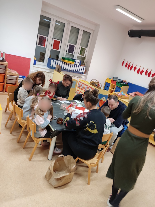 Dječji vrtić “Radost” ugostio je roditelje u skupinama Montessori 1, Montessori 2 i Radosna povodom izrade božićnih ukrasa na božićnim radionicama. Napravljenim ukrasima djeca su ukrasila božićnu jelku u vrtiću. Na zadovoljstvo svih ostvarena je još jedna suradnja s roditeljima i bakama s kojima smo uživali u zajedničkoj izradi božićnih ukrasa uz zvuke tradicijskih božićnih pjesama.