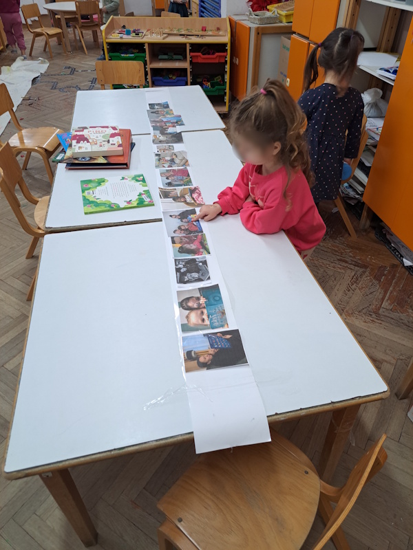 Djeca su donosila slikovnice od kuće koje smo zajednički čitali ili su ih djeca međusobno čitala jedni drugima u manjim skupinama. Svako jutro započinjali smo čitanjem jedne slikovnice, čime smo stvorili ugodnu i poticajnu čitateljsku rutinu.