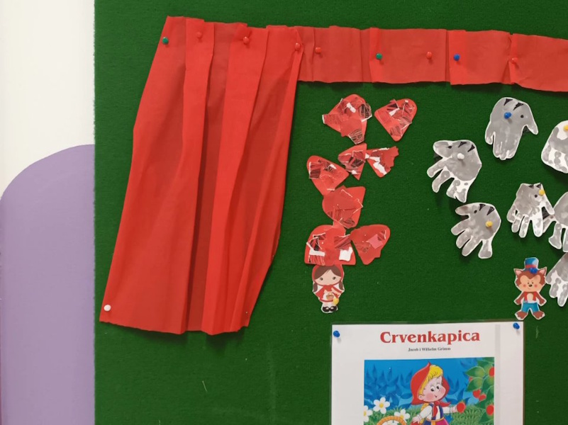 U mlađoj jasličkoj skupini djeca su s velikim veseljem istraživala bajku *Crvenkapica*. Kroz igru i poticaje upoznavali smo obilježja šume, prirodne materijale, boje i zvukove te se, uz kostime i rekvizite, maštovito uživljavali u likove iz priče.