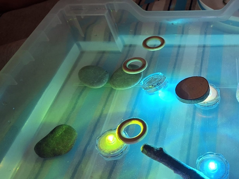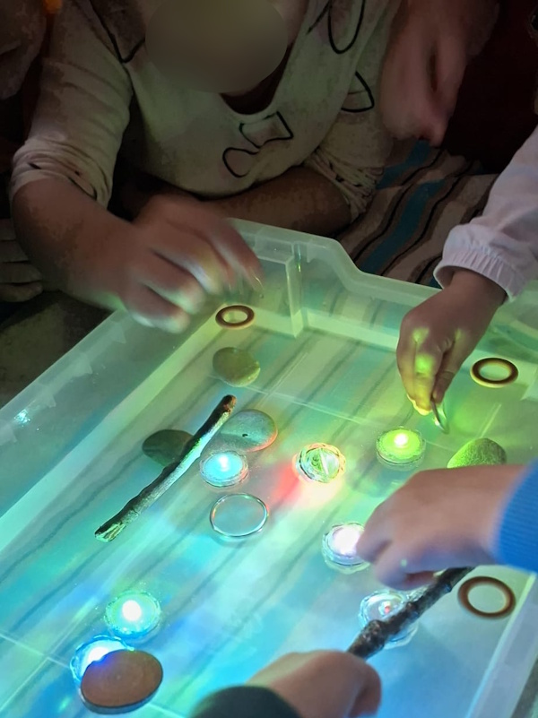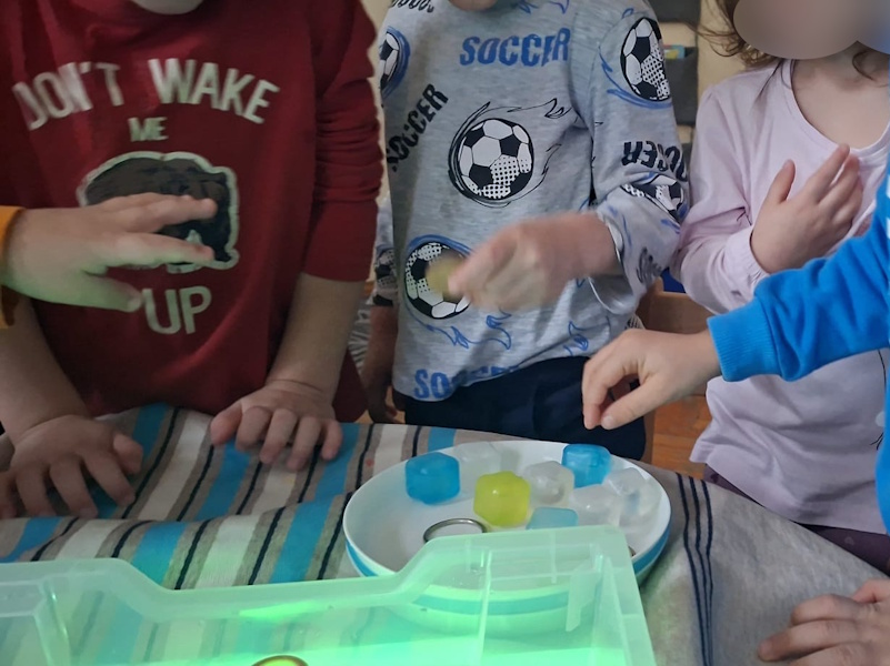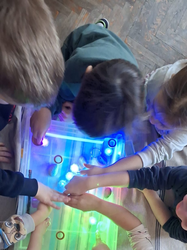 Djeca su kroz senzomotoričke aktivnosti istraživala različita agregatna stanja vode – kao i ono što tone, a što pluta – uz mali dodatni poticaj atmosfere koju su stvarale svijetleće lučice. Manipulacijom materijala razvijali su finu motoriku šake te koordinaciju oko ruka. Aktivnosti su poticale koncentraciju, suradničko učenje, komunikaciju. Uz pažljivo osigurano okruženje, cijeli proces je doprinio osjećaju sigurnosti, samostalnosti i pozitivnom doživljaju učenja kroz igru.