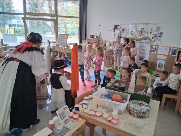 U Starijoj odgojno-obrazovnoj skupini A1, odgojiteljice Ivana Skeledžija i Slavica Benčik, biranim prostorno-materijalnim i duhovnim pozivima na igru, a potom ciljanim pokušajima provokacija iste, s djecom su se uputile tragovima žita, brašna, vode i pjesme u čudesne putove dječje igre.