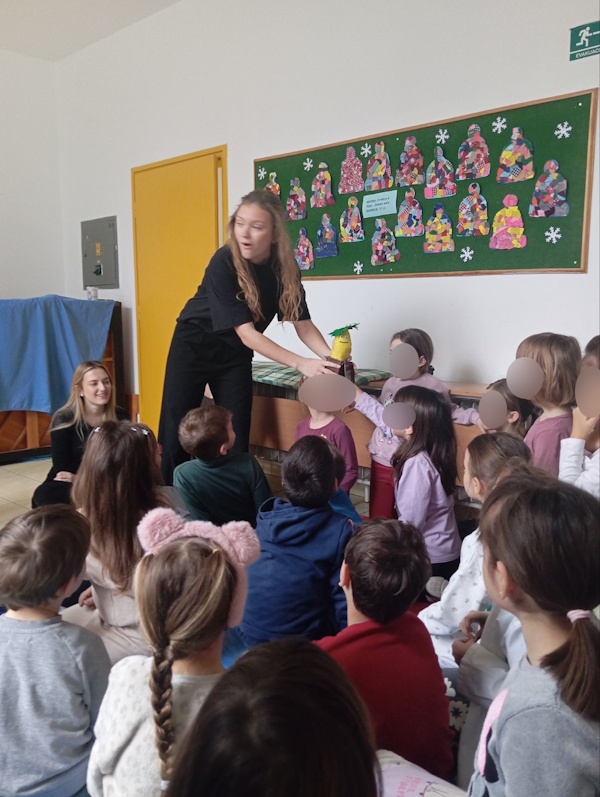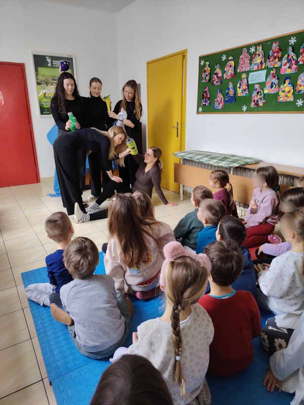 Radionica je započela učenjem pjesmice “Otpad nije smeće”, na koju se nadovezao kratki igrokaz. Djeca su s velikim interesom pratila igrokaz o razvrstavanju otpada nakon kojeg su se aktivno uključili u razgovor, pokazujući razumijevanje eko poruka. Tijekom igrokaza djeca su postavljala pitanja, komentirala razne situacije te prepoznavala pravilne i nepravilne načine razvrstavanja otpada.