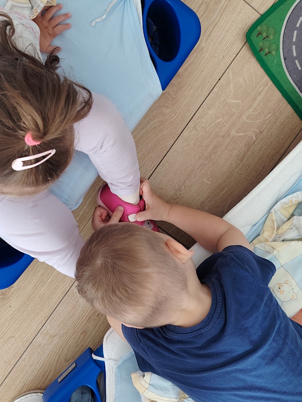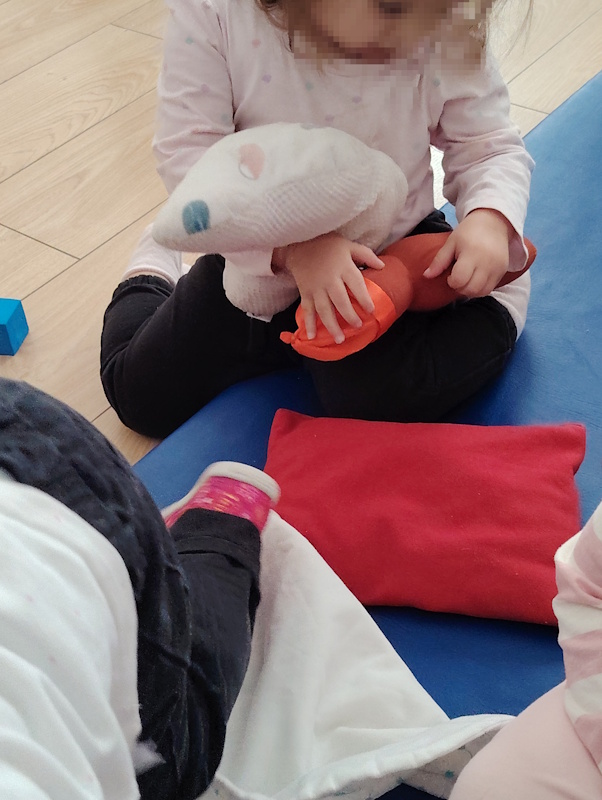 U obiteljskom centru boravka obogatili smo poticajno okruženje lutkicama različite boje kože, što je pridonijelo razumijevanju i prihvaćanju raznolikosti. Djeca su kroz simboličku igru pokazivala brigu o lutkama – hranila ih, uspavljivala i pjevala im poznatu pjesmu „Blistaj, blistaj zvijezdo mala“. Kod djece je ovakva aktivnost utjecala na razvoj socijalno-emocionalnih vještine i razumijevanje odnosa brige i povezanosti.