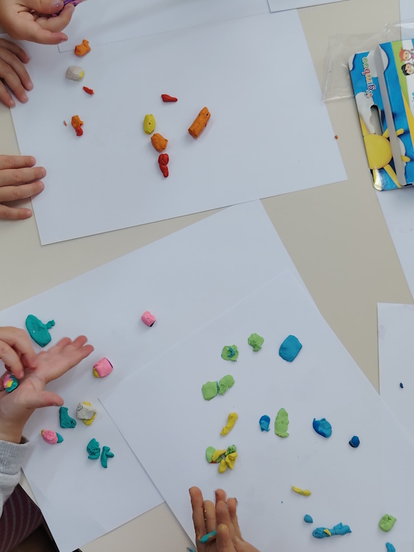 Kroz likovne aktivnosti djeca su oblikovala plastelin u različitim bojama te otiskivala dlanove, vježbajući finu motoriku, koncentraciju i izražavanje kroz stvaralaštvo. Otisci dječjih ruku postavljeni su na pano u kutiću za roditelje uz zajedničku poruku: „Zemlja je naš zajednički dom, a prijateljstvo je naš putokaz.“