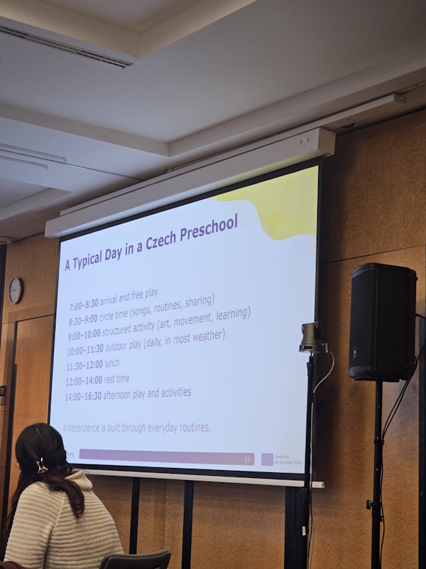 U sklopu edukacije organiziran je i posjet dječjem vrtiću u Pragu, tijekom kojeg su sudionici imali priliku upoznati njihov predškolski sustav u praksi. Naglasak je na razvoju samostalnosti djece, kao i učenje kroz igru i istraživanje. Unatoč određenim razlikama u organizaciji rada, vidljive su brojne sličnosti u pristupu odgoju i obrazovanju, osobito u stvaranju sigurnog i poticajnog okruženja za cjelovit razvoj djeteta.