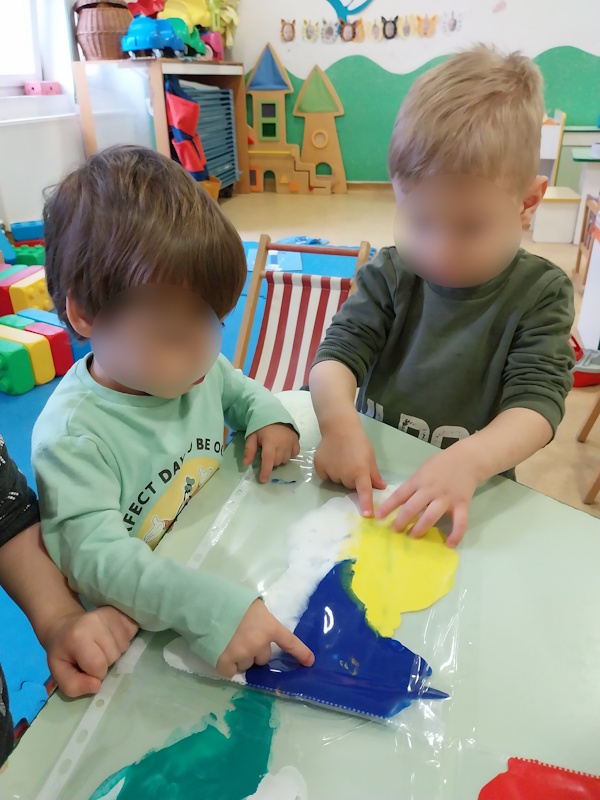 U podcentru Bubamara u starijoj jasličkoj skupini odgojiteljice su osmislile aktivnosti na temelju dječjeg interesa za boje. Cilj aktivnosti bio je potaknuti senzorni razvoj djece kroz igre bojama, upoznavanje osnovnih boja te poticanje spontanog istraživanja, pokreta i izražavanja u sigurnom i poticajnom okruženju.