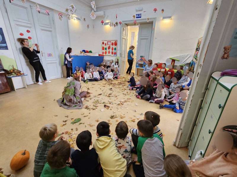šarenom lišću koje poprima sve boje jeseni, o mirisnom voću koje dozrijeva u jesen te o slasticama koje od njega možemo pripremiti, poput finih kolača. Zajedno s Teticom Jesenkom otpjevali su nekoliko jesenskih pjesmica koje su unijele radost i toplinu u našu sobu, a zatim su se okušali i u veselim natjecateljskim igrama.