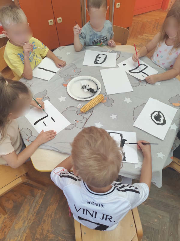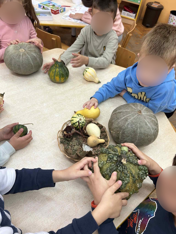 Jesen je stigla u naš vrtić Mak u svom najljepšem ruhu, šarena, mirisna i prepuna zanimljivih plodova. Uz pomoć roditelja, djeca su ovih dana marljivo prikupljala raznovrsne jesenske plodove, tikve, kukuruz, žireve, kestene, suncokrete, sjemenke i šareno lišće. Naše vrtićko dvorište i sobe postale su prava mala jesenska oaza, bogata bojama i teksturama koje potiču dječju znatiželju i istraživački duh. Kroz brojne aktivnosti djeca su imala priliku povezati iskustveno učenje, umjetničko izražavanje i igru na otvorenom. U kreativnom kutku runili su kukuruz, promatrajući kako se zrna odvajaju od klipa te razgovarali o tome gdje kukuruz raste i čemu sve služi. Tikvice i kukuruz slikali su tušem, istražujući oblike, sjene i teksture koje se pojavljuju u njihovim crtežima. U istraživačkom centru poučno su proučavali jesenske plodove, uspoređivali su veličine, oblike i boje tikvi, kukuruza, žireva i suncokreta. Sunčani jesenski dani iskoristili su se za igre i istraživanje u dvorištu vrtića. Djeca su s veseljem skupljala kestene i lišće. Od prikupljenog lišća nastali su maštoviti otisci temperom, a djeca su uz to razvijala finu motoriku i osjećaj za boje i kompoziciju. S velikim zanimanjem pisali su prstima po palenti, crtali oblike i slova te tako vježbali finu motoriku, koncentraciju i osjet dodira. Veliku zahvalnost dugujemo roditeljima koji su se rado uključili u prikupljanje jesenskih plodova i tako doprinijeli stvaranju bogatog i poticajnog okruženja za djecu. Ova suradnja još jednom je pokazala koliko su zajedništvo i podrška obitelji važni u odgojno-obrazovnom procesu. Jesenske aktivnosti u našem vrtiću su prava mala škola života, spoj igre, istraživanja i kreativnosti. Djeca uživaju u svakom trenutku, a kroz iskustveno učenje razvijaju radoznalost, odgovornost i ljubav prema prirodi.