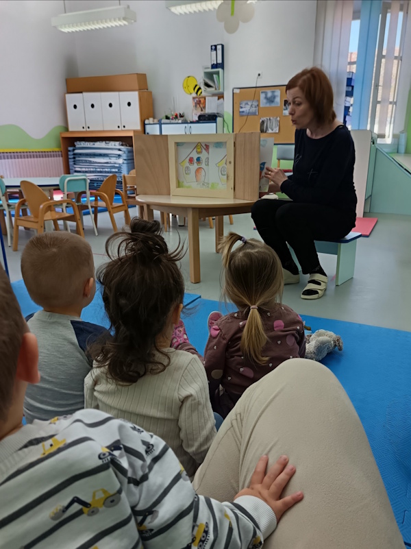 Djeca su s iznimnom pažnjom pratila svaku sliku i svaku izgovorenu riječ. Kroz jednostavnu priču, Kamishibai tehnika, omogućila je djeci da na njima razumljiv način dožive svijet boja i zajedništva.