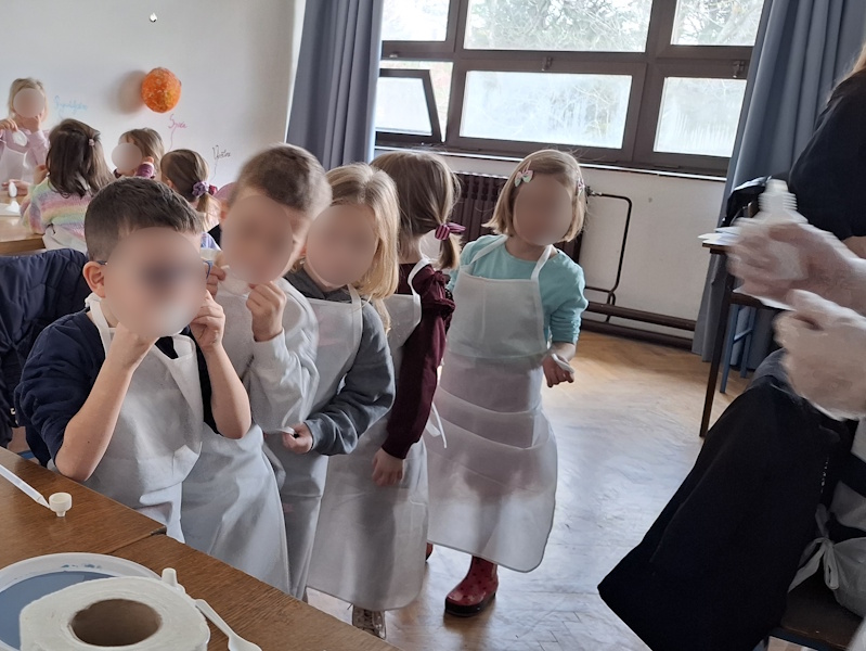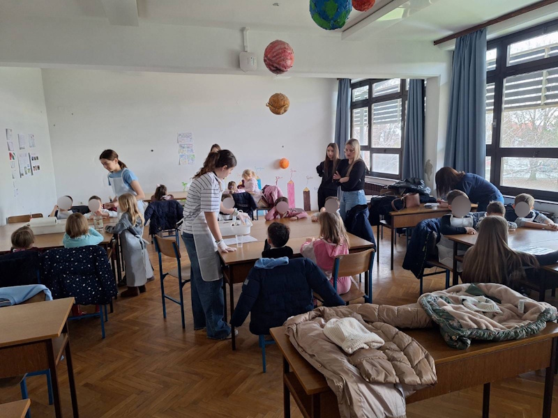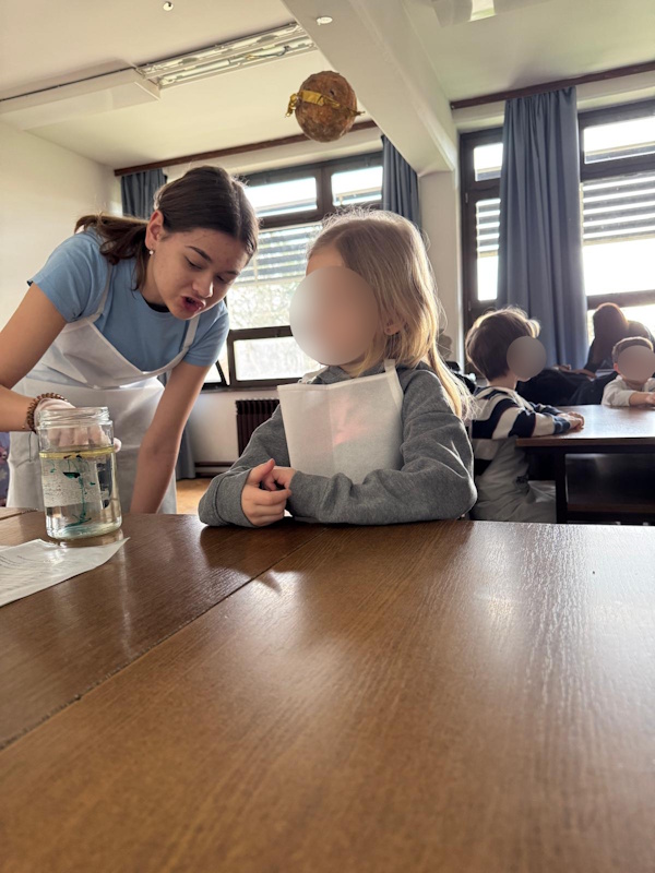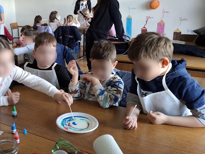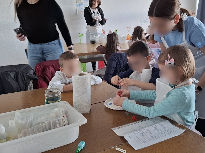 U suradnji s učiteljicom Dolaček i izvannastavnom grupom kemičara iz 8b razreda OŠ Retfala ostvarena je radionica pokusa s djecom starije A skupine podcentra Sunčica. Radionica se održala u razredu škole. Djeca su bila raspoređena u manje grupe te su imala priliku sudjelovati i isprobati kako dolazi do kemijske reakcije različitih tvari. Na kraju radionice djeca su dobila diplome za aktivno sudjelovanje, a dogovorena je i daljnja suradnja.