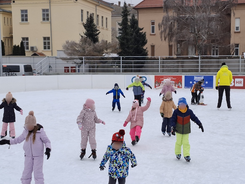 Djeca predškolskih skupina dječjeg vrtića Potočnica sudjelovala je u trodnevnom programu klizanja koji je donio mnogo radosti, novih iskustava i izazova. Program klizanja organizirao je Dječji vrtić Osijek u suradnji s Školskim športskim savezom grada Osijeka, uz pratnju i podršku odgojitelja. Odlaskom na klizanje poticali smo zdrav način života, razvoj motoričkih sposobnosti te osnaživanje djece kroz usvajanje novih vještina. Program je također imao cilj potaknuti samopouzdanje, ustrajnost i osjećaj uspjeha kod djece. Djeca su kroz stručno vođen program upoznala osnove klizanja – pravilno stajanje, održavanje ravnoteže, kretanje i zaustavljanje. Poseban naglasak je stavljen na ohrabrivanje djece i poštivanje individualnog tempa svakog djeteta. Sudjelovanjem u programu ostvarene su brojne razvojne zadaće: razvoj grube motorike, ravnoteže i koordinacije, jačanje mišićne snage i izdržljivosti, poticanje socijalnih vještina i međusobne suradnje, razvoj pozitivnog odnosa prema tjelesnoj aktivnosti. Djeca su stekla novo iskustvo učenja kroz pokret, razvijala upornost i hrabrost pri savladavanju novih izazova te osjetila zadovoljstvo vlastitim napretkom.