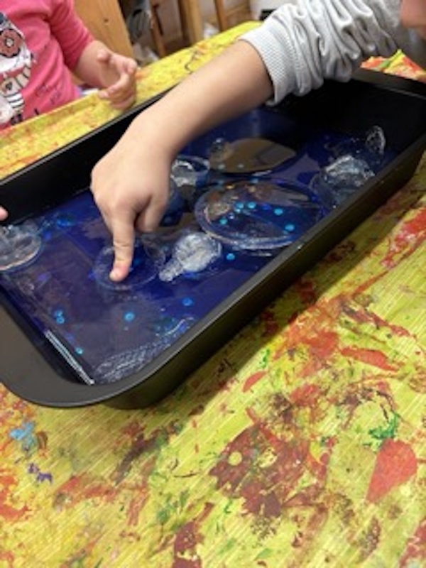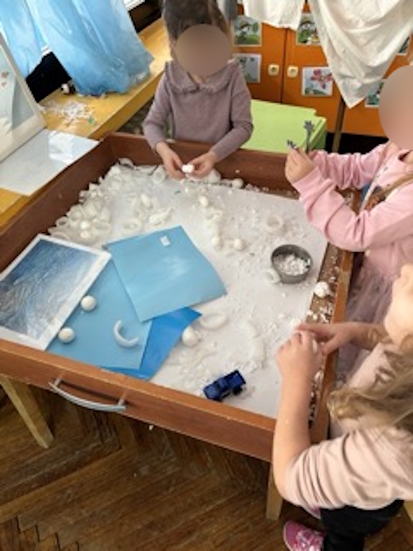Projekt je započeo proučavanjem snijega – djeca su ga istraživala, bojala i promatrala njegove promjene. Kroz praktične aktivnosti s ledom učili su kako se led topi, što utječe na njegovo stanje te kako se voda mijenja pod različitim uvjetima. Manipuliranjem raznim neoblikovanim materijalima poticali su razvoj fine motorike, kreativnosti i mašte.