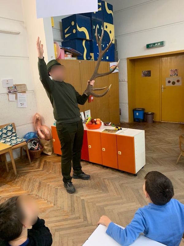 Kroz razgovor prilagođen dječjoj dobi, gost je djecu upoznao s ulogom lovaca u očuvanju prirode, brigom o šumskim životinjama te važnosti očuvanja njihovih staništa. Djeca su saznala kako lovci brinu o životinjama tijekom zime, prate njihovu brojnost i pomažu u očuvanju prirodne ravnoteže.