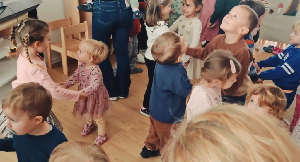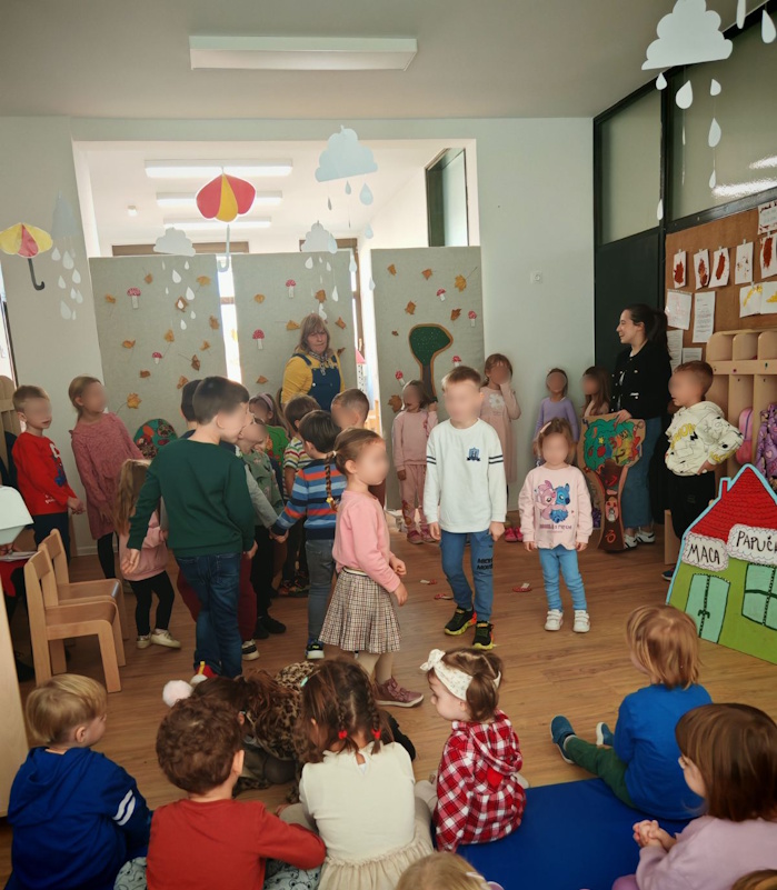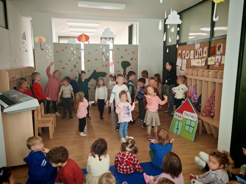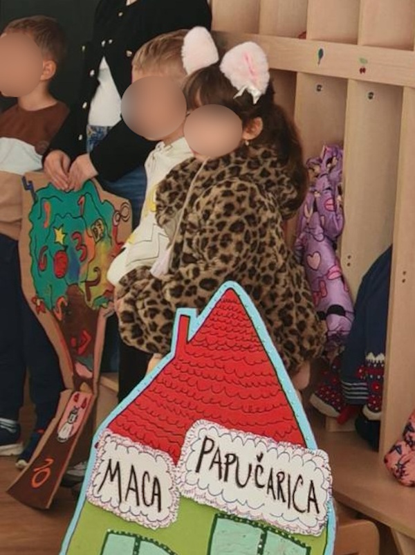 Djeca vjerske supine podcentra Višnjevac uz pomoć odgojiteljica i glazbene suradnice Anastazije Vranić pripremila su glazbeno-dramsku improvizaciju „Maca papučarica“ za djecu podcentra Višnjevac 2. Kratkom šetnjom do PC Višnjevac 2 uživali smo u bojama jeseni i promjenama u prirodi. Poticaj da posjetimo djecu u našem PC Višnjevcu 2 bilo je i obećanje da ćemo posjetiti Martininu seku koja je polaznik tog vrtića. Na zanimljiv način uveli smo djecu u svijet priče i pjesme, a naša Maca papučarica kroz priču i pjesmu djeci je na zanimljiv način prenijela i poruku: papuče, igračke i sve stvari trebamo pospremiti. Na kraju smo svi zajedno zaplesali uz pjesmu „Šapice mi maco daj“ i obećali još sličnih susreta.