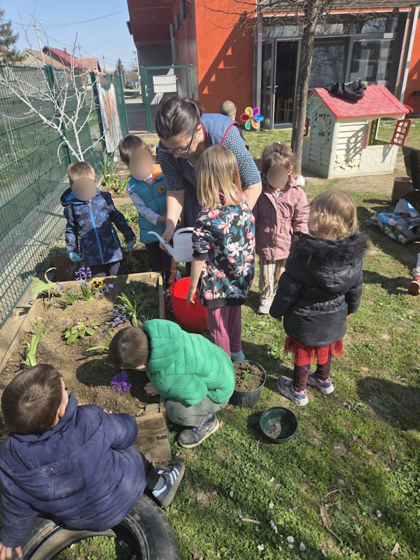 Tijekom sadnje djeca su prolazila kroz sve osnovne korake potrebne za brigu o biljkama. Sudjelovala su u pripremi zemlje, miješanju zemlje s kompostom, postavljanju sadnica u zemlju te zalijevanju posađenih biljaka. Posebno ih je zanimalo korištenje vrtnih alata i rad rukama, a s velikim su nestrpljenjem čekali svoj red za kanticu s vodom kako bi mogli zaliti biljku koju su sami posadili.