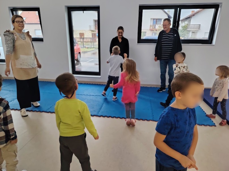 Pozdravili smo ih pjesmom „Dobar dan“ nastavili sa jesenskim repertoarom i za kraj jedno ringe-ringe kolo.