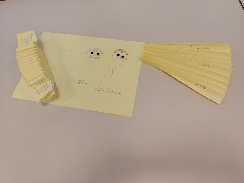 Spontano su šarene papire djeca potom krenula presavijati pa smo odlučili i lepeze zajednički napraviti. Jedna baka nam je pokazala i kako napraviti origami harmoniku.