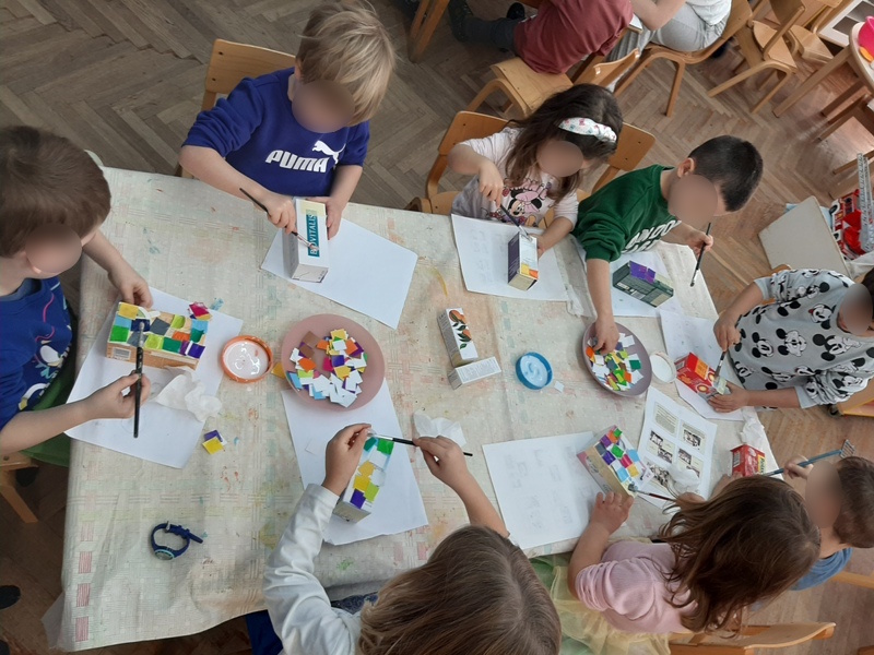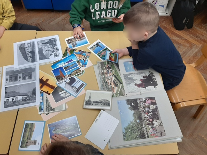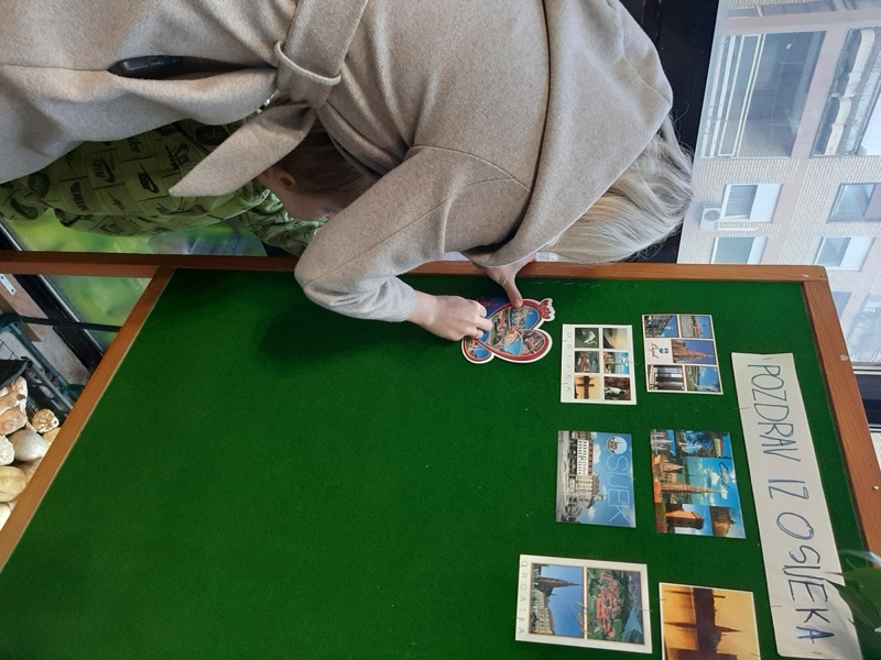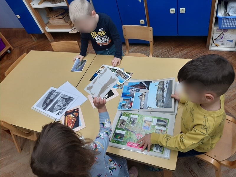 Prelistavajući Monografiju grada Osijeka, slikovne prikaze grada i razglednice djeca su stekla nova znanja o prostoru u kojem odrastaju, važnim ustanovama, spomenicima i važnim lokacijama. Djeca su prepoznavala pojedine lokacije i prepričavala svoje osobne doživljaje. Posjetili smo važne ustanove u blizini vrtića: poštu, banku, knjižnicu, kazalište, kapelicu Snježne Gospe i tržnicu te upoznali djecu s njihovim djelatnostima. Gledajući kratke filmove o gradu nekada i danas, djeca su uočila razlike u izgledu kuća, prometnih vozila kao i izgledu odjeće koju su ljudi nekada nosili. Povezivali su viđeno sa svojim iskustvima, npr. vidjeli su ljude obučene u narodne nošnje na nekom kulturnom zbivanju ili vidjeli su stare kuće u Tvrđi. Posjetili smo i muzejski prostor ispod vrtića i osvijestili postojanje grada u dalekoj prošlosti, doba rimljana. Ostvarili smo suradnju s roditeljima kroz prikupljanje razglednica koje prikazuju grad Osijek i slikovnih prikaza grada. Pri posjeti pošti poslali smo razglednicu djeci u zadarskom vrtiću i tako osvijestili važnost te ustanove i njezinih djelatnika. Svojim crtežima kuća, sudjelovanjem u izradi makete naselja i izradi Šarene ulice djeca su izrazila svoj vlastiti doživljaj , viđenje grada i života u njemu.