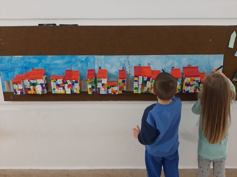 Prelistavajući Monografiju grada Osijeka, slikovne prikaze grada i razglednice djeca su stekla nova znanja o prostoru u kojem odrastaju, važnim ustanovama, spomenicima i važnim lokacijama. Djeca su prepoznavala pojedine lokacije i prepričavala svoje osobne doživljaje. Posjetili smo važne ustanove u blizini vrtića: poštu, banku, knjižnicu, kazalište, kapelicu Snježne Gospe i tržnicu te upoznali djecu s njihovim djelatnostima. Gledajući kratke filmove o gradu nekada i danas, djeca su uočila razlike u izgledu kuća, prometnih vozila kao i izgledu odjeće koju su ljudi nekada nosili. Povezivali su viđeno sa svojim iskustvima, npr. vidjeli su ljude obučene u narodne nošnje na nekom kulturnom zbivanju ili vidjeli su stare kuće u Tvrđi. Posjetili smo i muzejski prostor ispod vrtića i osvijestili postojanje grada u dalekoj prošlosti, doba rimljana. Ostvarili smo suradnju s roditeljima kroz prikupljanje razglednica koje prikazuju grad Osijek i slikovnih prikaza grada. Pri posjeti pošti poslali smo razglednicu djeci u zadarskom vrtiću i tako osvijestili važnost te ustanove i njezinih djelatnika. Svojim crtežima kuća, sudjelovanjem u izradi makete naselja i izradi Šarene ulice djeca su izrazila svoj vlastiti doživljaj , viđenje grada i života u njemu.