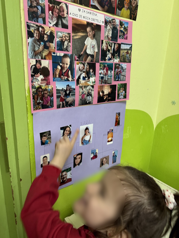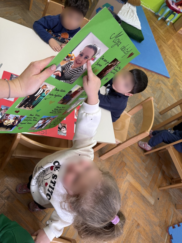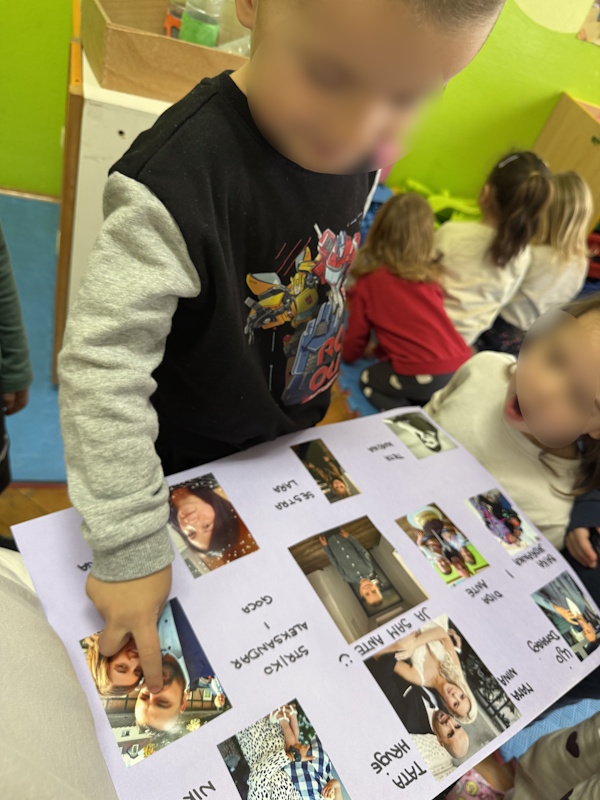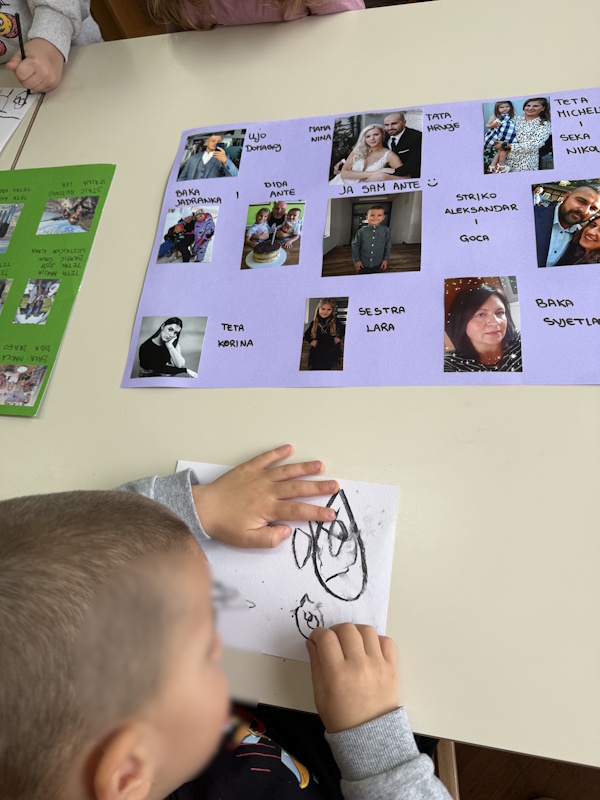 Projekt „Moja obitelj“ usmjeren je na upoznavanje djece s pojmom obitelji kao prve i najvažnije zajednice kojoj pripadaju. Dijete u vrtiću ponosno govori o svojim najmilijima, dijeli uspomene i uči da je svaka obitelj posebna. Kroz razgovor, igru i različite aktivnosti djeca prepoznaju članove svoje obitelji (mama, tata, braća, sestre, bake, djedovi, tetke, stričevi, ujaci, bratići i sestrične) te uče imenovati njihove uloge. U svakodnevnim razgovorima i kroz njihove plakate djeca opisuju tko čini njihovu obitelj, s kim žive i što najviše vole raditi zajedno. Djeca kroz igru, likovnu aktivnost, pjesmice i recitacije razvijaju osjećaj pripadnosti, sigurnosti i međusobnog poštovanja. Proširili smo temu i govorili kako smo mi vrtićka obitelj, istraživali fotografije te stvorili uspomenu s našim zajedničkim trenutcima. Vrtić postaje produžena ruka obitelji – mjesto gdje se nastavlja briga, podrška i razumijevanje. Mi odgojitelji, prijatelji i svakodnevne zajedničke aktivnosti stvaramo novo okruženje u kojem se dijete osjeća prihvaćeno i važno. Suradnja s roditeljima bila nam je iznimno važna i zahvaljujemo im na podršci i povjerenju.