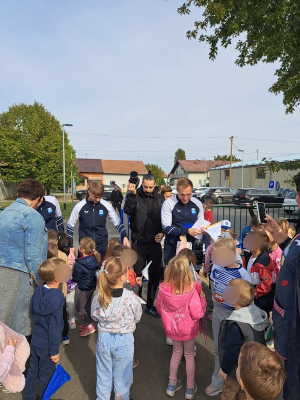 Nogometaši su se rado uključili u nogometne igre s mališanima, pjevali su navijačke pjesme te razgovarali s djecom o važnosti sporta, upornosti i timskog rada. Svaki trenutak bio je ispunjen osmijesima i veseljem, a posebno su ih razveselili autogrami i navijački rekviziti koje su igrači donijeli na dar.