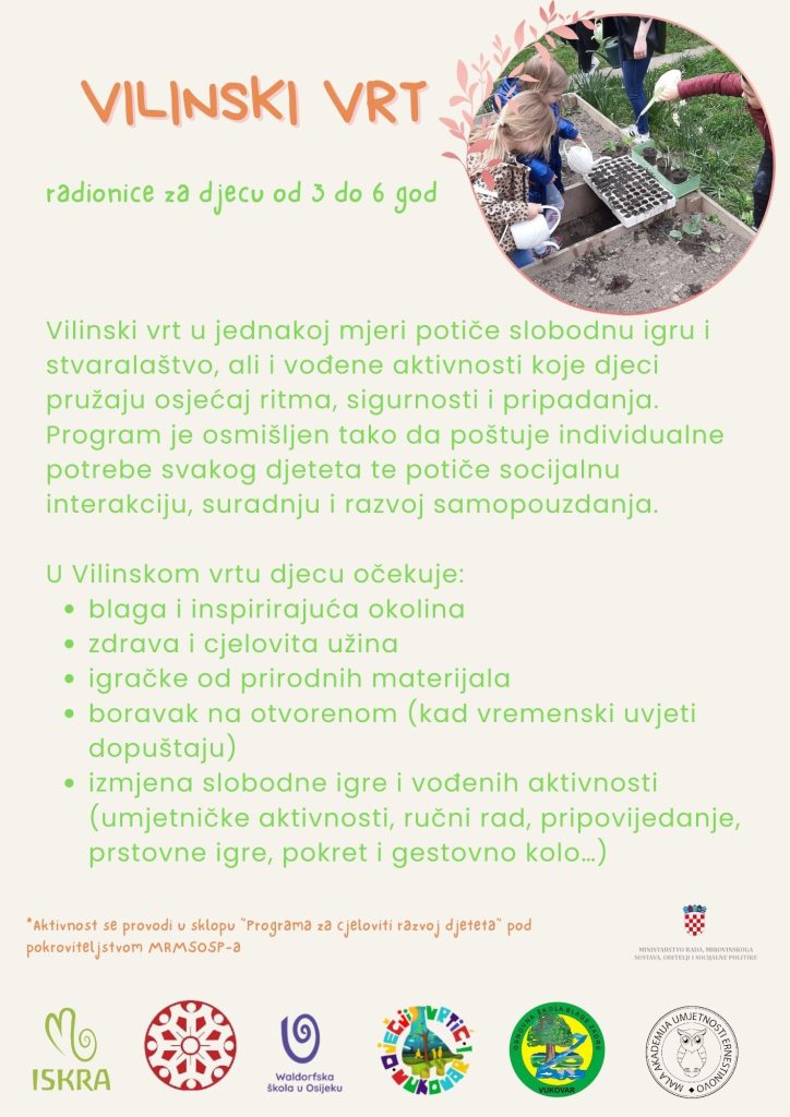 obavještavamo vas o mogućnosti uključivanja vašeg djeteta u besplatan programe u organizaciji Waldorfske škole u Osijeku.