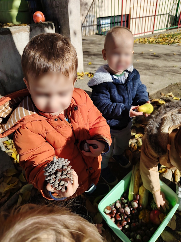 U vrtićkom su dvorištu djeca svih jasličkih skupina podcentra Cvrčak, osim naravno igre, uočavala promjene u izmjeni godišnjeg doba te promatrala plodove zemlje. Jesenske plodove osigurali smo u suradnji s roditeljima.