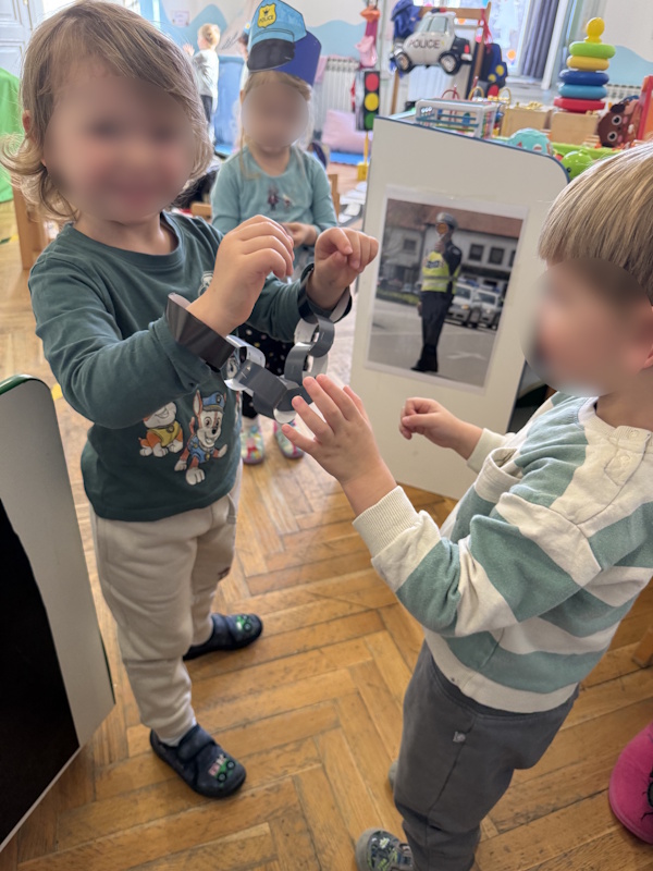 U mješovitoj jasličkoj skupini podcentra Vedri dani proveli smo aktivnosti na temu „Policija i semafor – naši prijatelji“. U sobi smo izradili cestu sa semaforima te kroz simboličku igru vozili autiće i učili prometna pravila.
