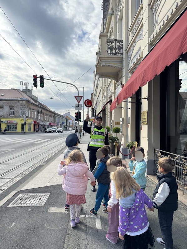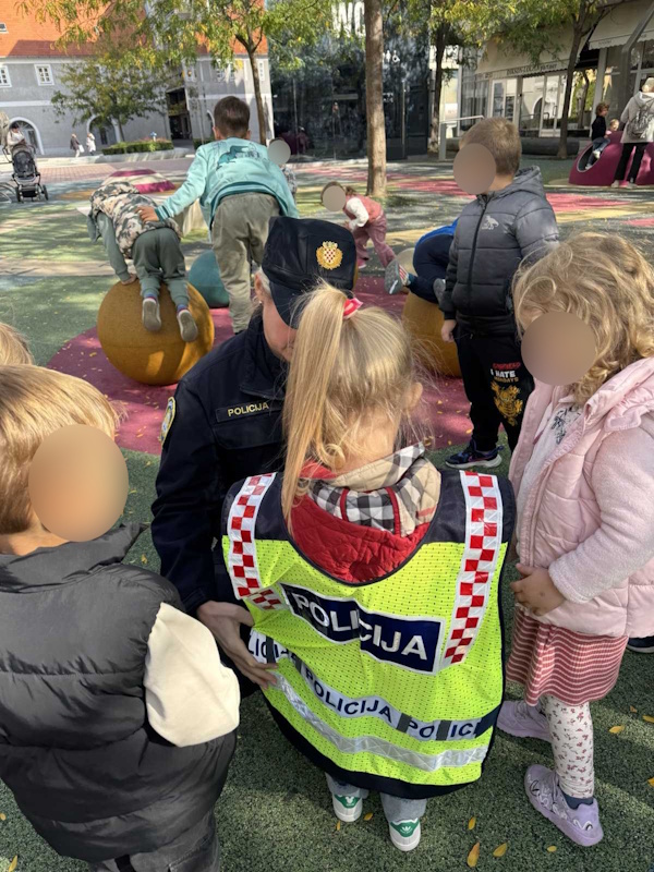 U podcentru Pučko otvoreno učilište, u srednjoj 2 skupini ”Ribice” i srednjoj vrtićkoj skupini ”Slonići”, tijekom mjeseca listopada provedene su aktivnosti na temu ,,Sigurnost u prometu”. Djeca su pokazala veliki interes za prometne znakove, pa smo ih iskoristili kao poticaj za različite aktivnosti. U skladu s ponuđenom temom u vrtić smo pozvali dvije policajke koje su s nama prošetale gradom te djeci pojasnile prometna pravila i pravilno ponašanje u prometu. Bio je to doživljaj koji će dugo pamtiti.