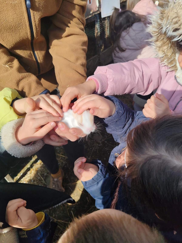 Djeca su neposrednim iskustvom upoznala život na farmi i suživot različitih životinja – od magarca, konja i koza do ovaca čije su ošišano runo mogla opipati i istražiti njegovu mekoću. Poseban doživljaj pružile su i perad, poput gusaka, kao i manji stanovnici farme – zečevi, zamorci i kornjače. Taktilnim istraživanjem djeca su osjetila različite teksture – od oklopa kornjače do kože svinje i mekog krzna mačke.