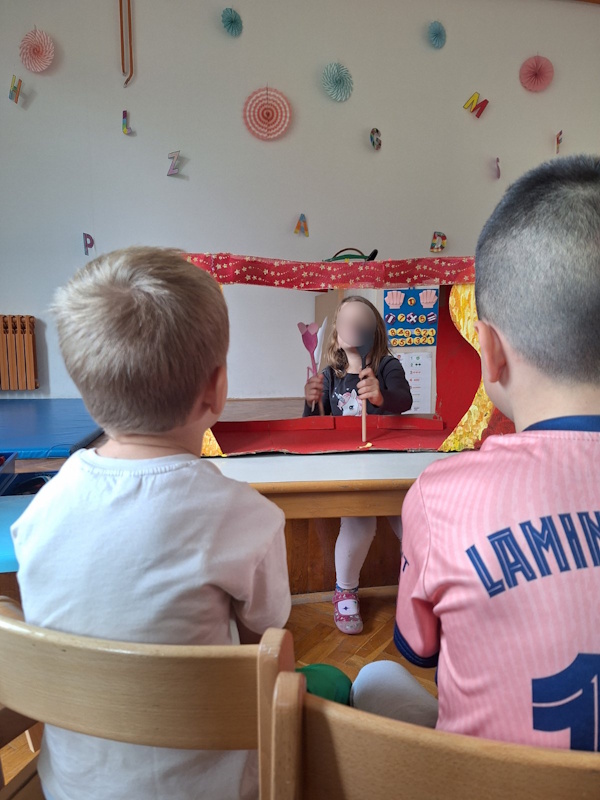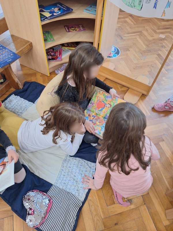 U našoj sobi dnevnog boravka formirali smo centar male knjižnice koji su djeca obogatila donošenjem svojih omiljenih slikovnica, a centar je vrlo aktualan i djeca u njemu borave svakodnevno. Izradili smo i svoju knjigu – ilustrirali, a neki su ju čak i napisali. Obogatili smo i dramski centar u kojemu djeca imaju mogućnost svoje omiljene priče dramski prikazati, ali i osmisliti svoje vlastite lutkarske predstave.