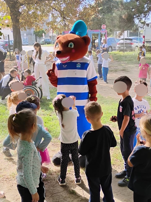 U našem vrtiću smo imali posebno i radosno druženje – u posjetu su nam došli članovi nogometnog kluba NK Osijek i njihova maskota Legos.Djeca su s velikim uzbuđenjem dočekala goste, koji su im kroz igru, razgovor i sportske aktivnosti približili svijet nogometa i važnost bavljenja sportom.