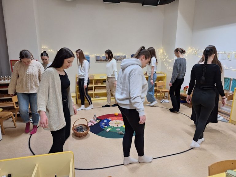 Dana 17.12.2025. g. u suradnji sa Fakultetom za odgojne i obrazovne znanosti Osijek i profesorice Opće pedagogije mag. prim. educ. univ. spec. art. therap., Montessori pedagoginjom Tenom Duran, Kristina Varga, odgojiteljica Montessori 1 skupine organizirala je predavanje i prezentaciju rada Montessori pedagogije studentima 1. godine prijediplomskog studija ranog i predškolskog odgoja i obrazovanja.