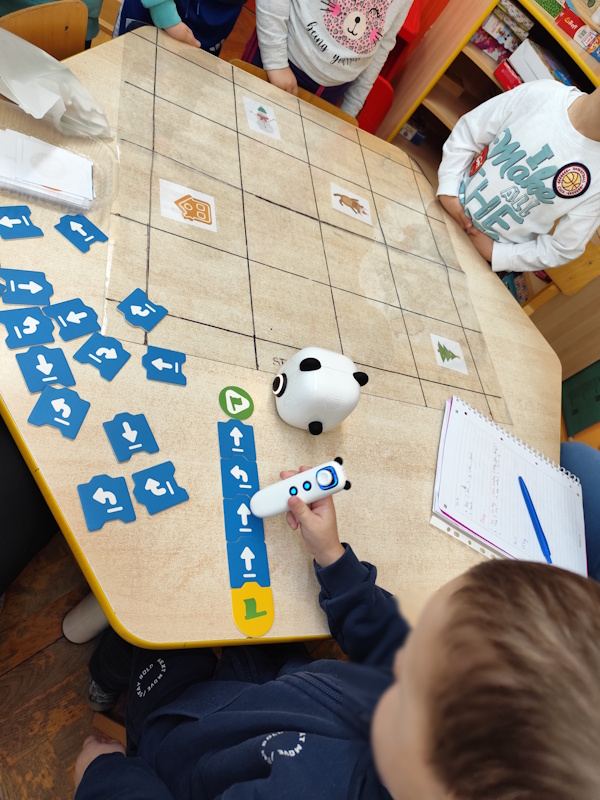 Kako bismo obogatili aktivnosti i potaknuli razvoj različitih vještina, uključili smo i robota mTiny. Kroz igru vođenja robota djeca su vježbala koordinaciju, snalaženje u prostoru, prostorne odnose te logičko zaključivanje. Uz puno smijeha i znatiželje uspješno su rješavala zadatke i savladavala male izazove koje smo im pripremili.