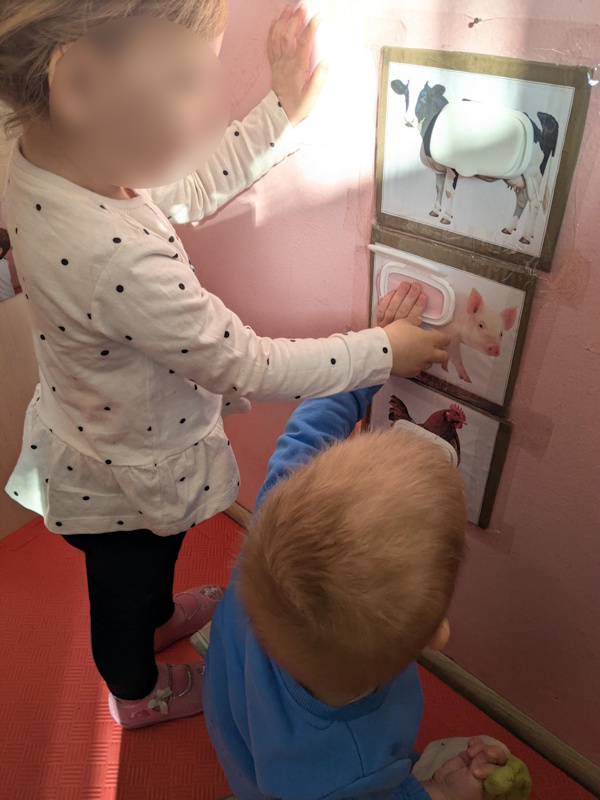 Bile su to različite senzorne, likovne i manipulativne aktivnosti usmjerene na razvoj fine motorike, koordinacije i preciznosti, ali i razgledavanje slikovnica o domaćim životinjama, usvajanje novih pjesmica i brojalica pomoću kojih smo bogatili rječnik te utjecali na razvoj govora.