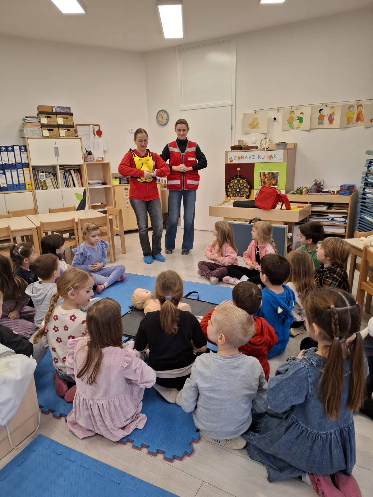 Torbu prve pomoći donirali su nam Hrvatski Crveni križ i Hrvatska poštanska banka. Volonterke Crvenog križa Osijek održale su radionicu neodgodivih postupaka pružanja prve pomoći u mješovitoj vrtićkoj skupini. Kroz radionicu djeca su se upoznala s različitim vrstama ozljeda i načinom spašavanja u pojedinim situacijama. Na taj način proširili su svoja postojeća znanja i ojačali kompetencije za postupanje u izvanrednim situacijama.