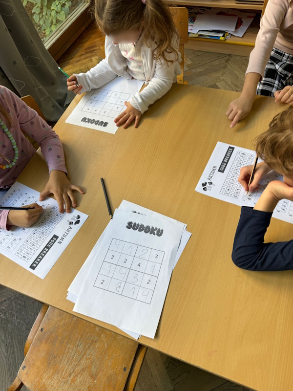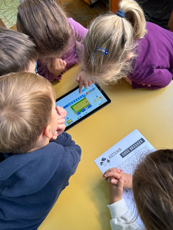 Drugu radionicu vodila je mama jednog djeteta, čime smo dodatno potaknuli suradnju s roditeljima i obogatili dječje iskustvo. Djeca su se okušala u raznim aktivnostima vezanima uz kodiranje, poput strujnog kruga, unplugged kodiranja, kodiranja i dekodiranja po bojama, te zabavne igre “pljeskanje po bojama”. Na taj su način djeca kroz igru učila logičko razmišljanje, timski rad i osnove programiranja.