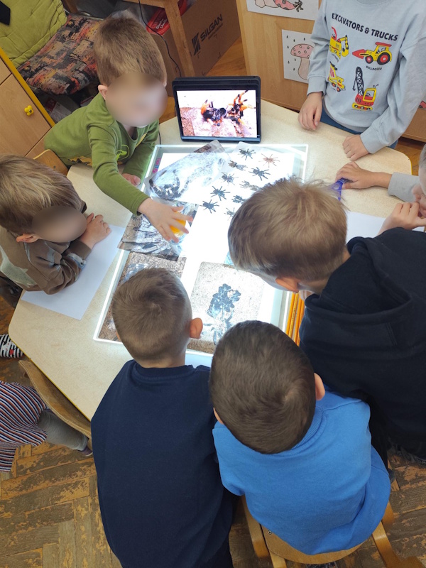 Kukce smo proučavali i u staklenkama te na svjetlećem stolu, što je dodatno obogatilo iskustvo učenja. Djeca su mogla promatrati oblike, prozirnost i strukturu kukaca na zanimljiv i vizualno privlačan način.