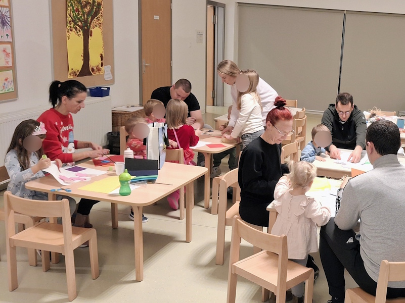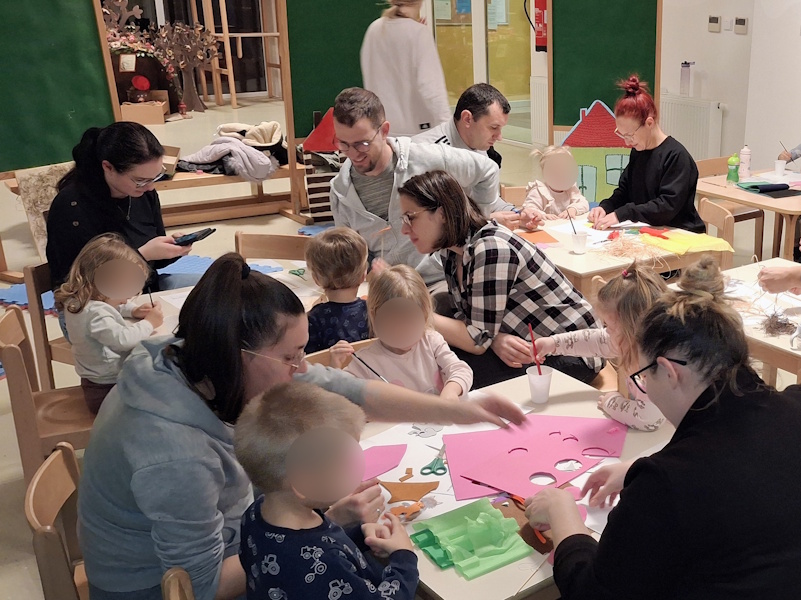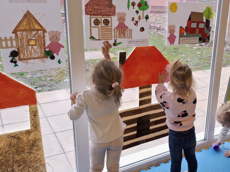 U podcentru Višnjevac, starija jaslička skupina “Sovice”, provela je poticajnu i edukativnu aktivnost. U srijedu 26. studenog, roditelji i djeca udružili su snage u kreativnoj radionici s ciljem izrade taktilne slikovnice na temu popularne bajke “Tri praščića”. Ova aktivnost omogućila je djeci da dodirnu priču koristeći različite teksture, što potiče razvoj fine motorike i kognitivne vještine.