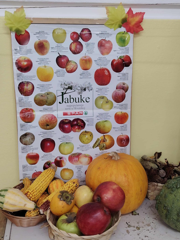 Tijekom tjedna djeca su kroz igru, istraživanje i kreativne aktivnosti obilježavala dan jabuka. Oformili smo kutak u sobi dnevnog boravka za jesenske plodove: jabuke, kruške, bundeve, kukuruz..