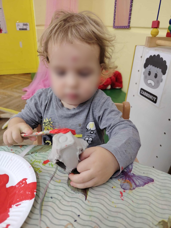 Svaki dan čitali smo slikovnice „Kuku: Jabuka“ te „Mala zelena gusjenica“. Iako kratke pažnje, većina djece uspjela je slikovnice poslušati do kraja, a neki bi tražili ponovno čitanje, uz ponavljanje riječi.