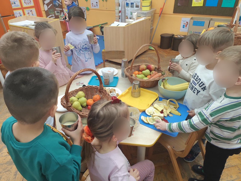 Posebno veselje izazvalo je isprobavanje različitih vrsta voća i povrća. Djeca su hrabro kušala nove okuse, uspoređivala ih i razgovarala o svojim dojmovima. Nakon toga su sudjelovala u izradi zdravog smoothieja, gdje su sama birala sastojke i pratila proces pripreme, a zatim s ponosom uživala u napitku koji su pomogla napraviti.