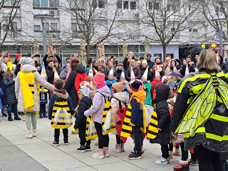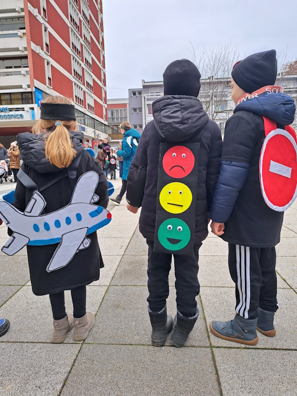 I ove godine su djeca predškolskih skupina podcentara u centru grada imala priliku susresti sa svojim vršnjacima iz drugih podcentara. Samom susretu prethodile su pripreme koje su se sastojale od izrade kostima uz pomoć roditelja i odgojiteljica te uvježbavanja koreografije za sam susret. Treći Dječji pokladni susreti dogodili su se i ove godine na Trgu slobode. Na susretu je sudjelovalo 160 djece predškolskog uzrasta iz podcentara Vedri dani, Bubamara, Potočnica i Latica. Bilo je tu raznovrsnih stanovnika livade (mrava, bubamara, pčela, bumbara, raznovrsnog cvijeća) koju su svojim maskama prikazala djeca podcentara Vedri dani i Bubamara. Djeca Latice su zajedno s odgojiteljicama prikazivale Svijet mora i Promet. Djeca Potočnice su predstavljala grupnu masku ‘Školski pribor’ u kojem se moglo naći svega, i drvenih bojica i pastela i vodenih boja i tempera. Pri susretu na Trgu slobode, djeca su se unutar kruga predstavili jedni drugima a zatim zajedno otplesala i otpjevala ‘Pokalde su stigle’ i neizostavnu pjesmu s pokretima ‘Kad si sretan’ te se u ‘lakiću’ i uz ‘kaubojski ples’ uputila svojim podcentrima. Cilj dječjih pokladnih susreta je njegovanje pokladnih običaja, susret djece vrtića iz centra grada, prezentacija maski, upoznavanje bliže okolice te suradnja s roditeljima.