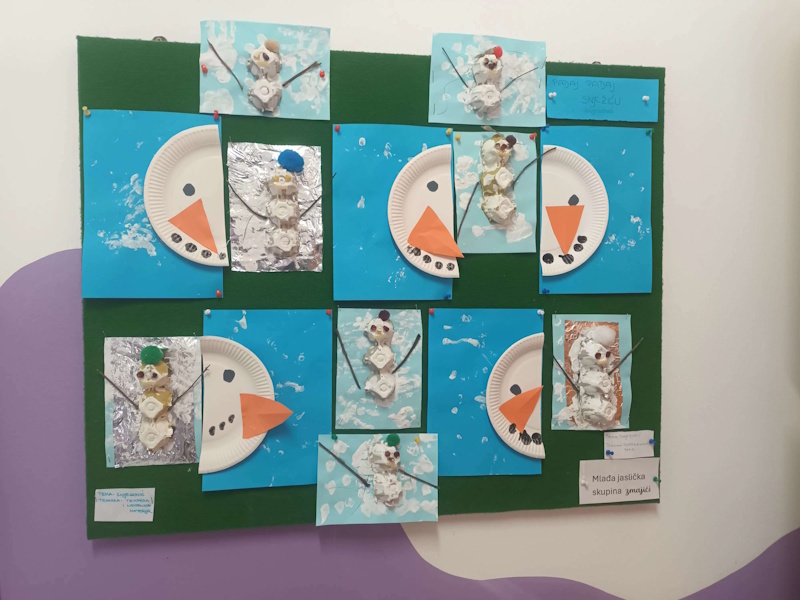 Proteklog tjedna djeca mlađe jasličke skupine u podcentru Maslačak istraživala su zimu kroz niz osjetilnih i likovnih aktivnosti. Kroz igru, dodir, promatranje i likovno izražavanje djeca su ostavljala svoje prve zimske tragove – u bojama, otiscima, pokretima i osmijesima.