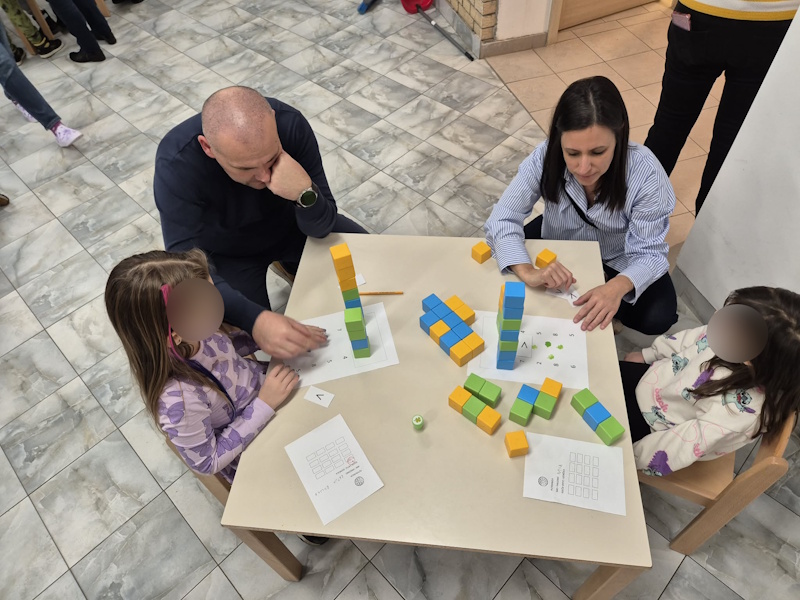 Večer matematike osmišljena je kao skup interaktivnih radionica namijenjenih djeci, roditeljima i odgojiteljima. Pripremljeni su centri aktivnosti s matematičkim zadatcima koje su djeca rješavala samostalno ili uz pomoć roditelja.