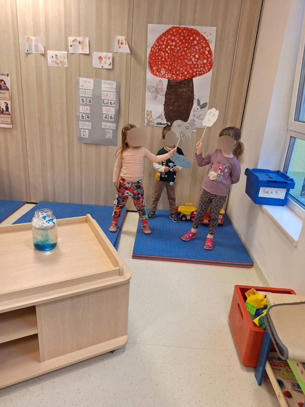 Kroz spoznajne i istraživačke aktivnosti djeca su postala svjesnija vremenskih promjena. Pokusima su proširivali spoznaje o oblacima i padalinama. Dramatizacijom te govorno-jezičnim aktivnostima uočavali su uzročno-posljedične veze i zbog čega su dani kraći i zašto je sve hladnije. Djeca su proširivala svoj vokabular i spoznala nove pojmove. Likovnim aktivnostima izražavala su svoju kreativnost izrađujući i slikajući garderobu i pomagala za hladnije vrijeme. U glazbenim aktivnostima pjevali smo pjesme o kiši i oblacima te ih upotpunili plesom i glazbalima proizvodeći zvukove kiše i vjetra. Naučili smo nove pokrete i sve to ujedinili u ples.