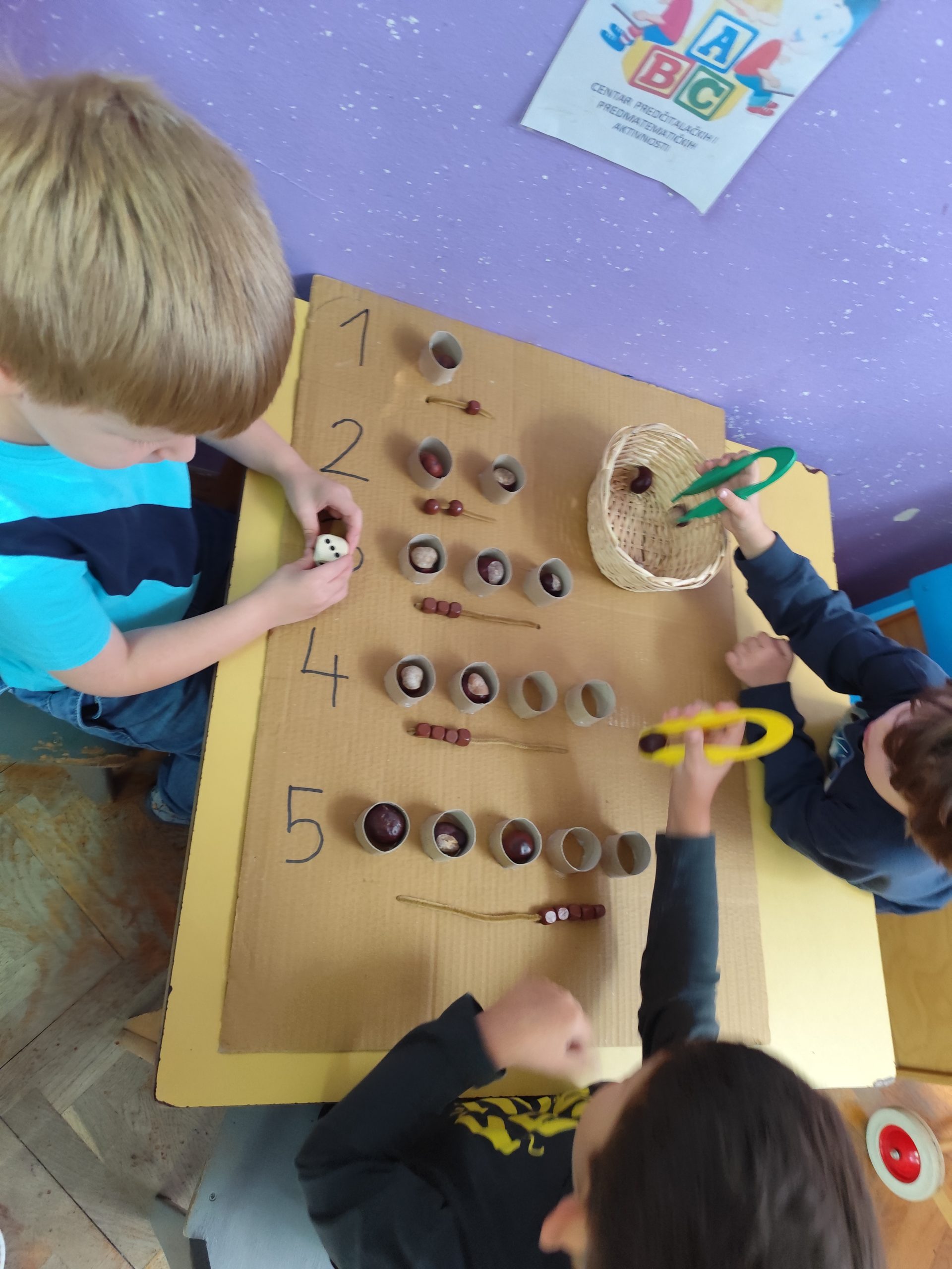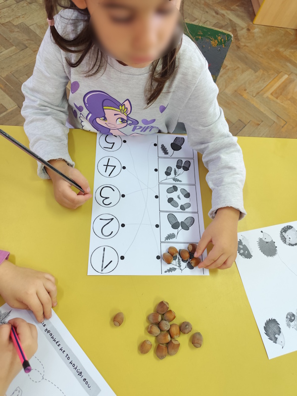 Predmatematičkim aktivnostima djeca su učila brojati, povezivati količinu s brojem. A kroz rješavanje radnih lista u temi razvijali smo pažnju, koncentraciju te finu motoriku.