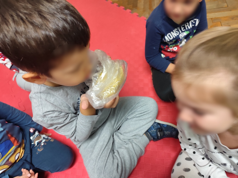 Kroz senzomotoričke aktivnosti igre slanim tijestom mirisno obogaćeno cimetom, kakaom, kavom i kurkumom poticao se razvoj taktilna i mirisna osjetila.